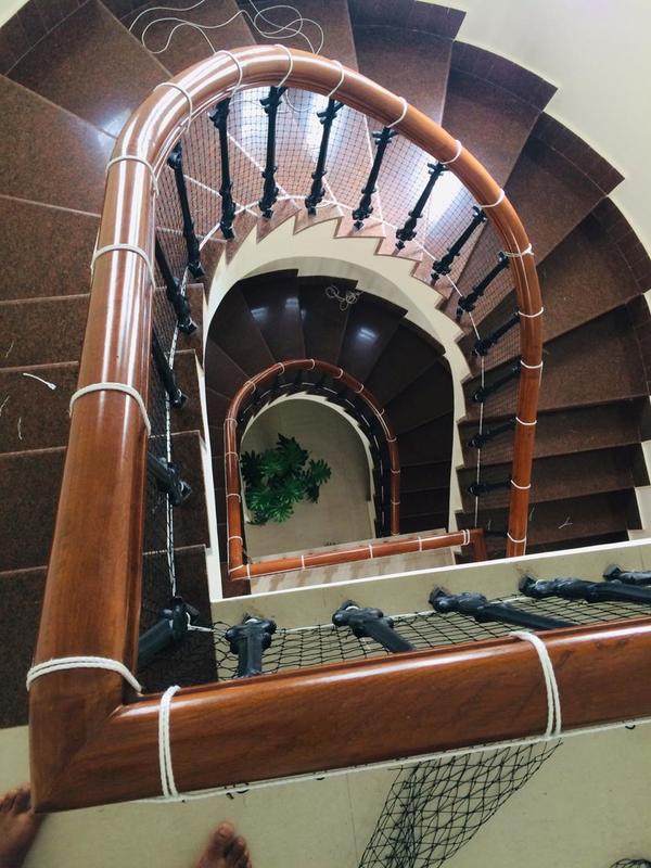 n many modern buildings, staircases are designed with open railings or wide gaps that may look attractive but can be unsafe. Children often play near staircases without understanding the risk, and pets may accidentally slip through railings. Staircase safety nets act as a strong barrier that blocks these open areas while allowing visibility and airflow. This helps maintain safety without affecting the building’s interior design.